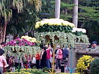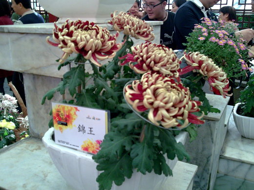 看到越來越多的耶誕佈置街景,倏地警覺到又屆歲末年終,各行各業從百貨週年促銷活動起,不斷帶動人潮,拼經濟拼人氣拼買氣,即使氣溫一天天轉寒,冬衣漸漸出籠,就是擋不住慾求的熱情,尤其即將到臨的選舉更將人際的關係重新翻炒,再一次考驗台灣人的韌性,不過民眾似乎已經厭倦你死我活的藍綠蜘蛛網,假日盡情的追逐自我,世貿資訊展欣賞showgirl、家俱街封街拍賣、自行車健騎、士林官邸菊展;樣樣都帶動人潮,好久沒看到人群這麼自發的團體行動,連公車司機都大嘆發生什麼事,我也不外於人群,走進士林官邸參觀菊展,儘管萬頭鑽動大減菊花嬌美,但遊興絲毫未減,尤其大立菊的嫁接技術,栽培出一株200、300、400,甚至530朵的巨型盆栽,不得不為台灣的花卉農業讚嘆,接著再到士林夜市閒逛,隨意排隊買了一個起司馬鈴薯,真是一個創意美食,尤其看到寶貝女兒滿足的直誇好吃,心中滿足早已溢於言表,隨著人潮無意識的走馬看花,看到人們的生命力,大家都為生存為生活在打拼,辛苦歸辛苦倒也自得其樂,這就是台灣經濟奇蹟的原動力,一個隨興的週末午後有感!