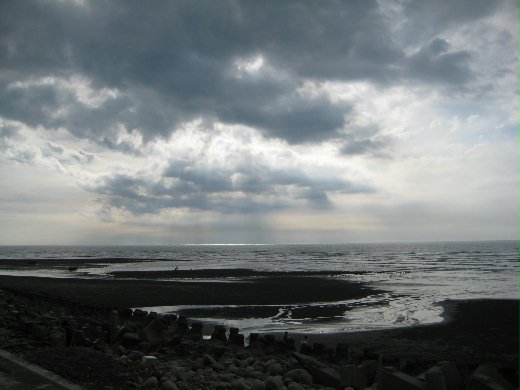 典型的雷陣雨來去匆匆,在它劃下休止符的同時,手機鈴聲響起,你問我在那兒,我笑著說在市場裡閒蕩,就要回家;你說我太無聊,去海邊吧!抬起頭看著天空,是碩大的藍,還有稀疏的白。