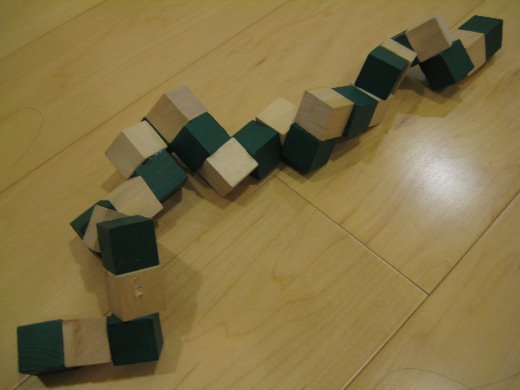 朋友的父親說要把這一長條的小方塊組合成一個大方塊,