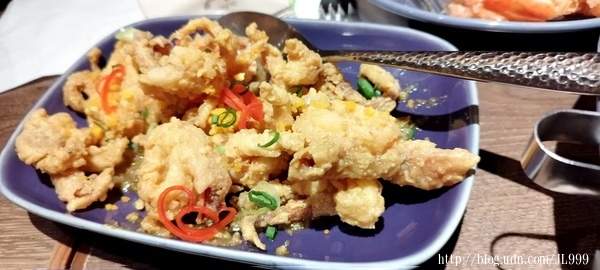 【金沙魷魚】奇怪!現在都是這樣偷吃步嗎?魷魚或中捲裹粉油炸出鍋後灑上幾滴鹹蛋黃,這樣也叫【金沙】?工序不對。