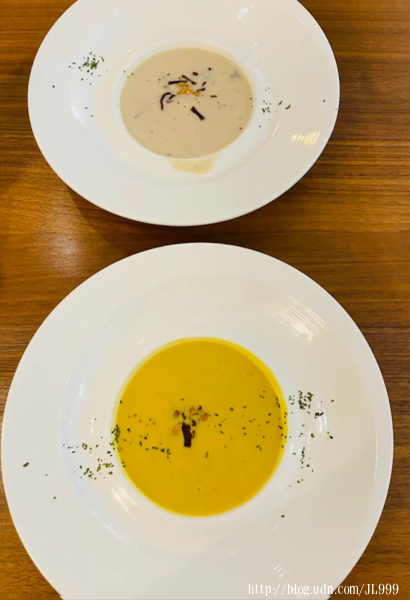 ↑套餐附湯我選【培根奶油蘑菇湯】&同學選【夏綠沁經典南瓜濃湯】火侯都剛好,食材有完全的融入濃湯裡,呈現極香醇的好喝。100分