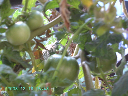 這次種蕃茄的經驗,使我感覺到氣候的變暖,影響到一些植物的成長是如此之大!在整個蕃茄成長過程中,我將蕃茄樹從伸出陽台、在陽光曝曬的情況下,把這些枝幹轉進到陽台內,降低曝曬的溫度,多少對花的保護起了一些作用,使花能在陽台內成功的授粉。但是畢竟知道今年的溫室效應真的影響非常大。所以前些日子蕃茄一斤有到60元,若天氣如此高溫下去,未來的農作物不知會貴到什麼程度。