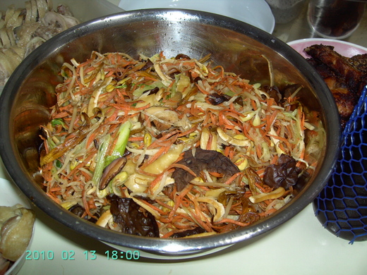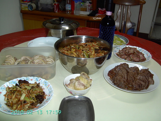 非常感謝三姊和二姐的付出,每年的年菜,他們都要早兩三天做預備,尤其是灌香腸更要早一些預備,以便晒乾。和炸肉圓和豆腐圓子。長年以來,回味年菜,總是不膩,並能使全家團聚在一起,雖然今年少了大姐在我們當中,但是全家凝聚在一起,吃年夜飯,發紅包,使家人的親密一直要被傳承下去。所以這次三姐要小弟的孩子們學著做年菜,鼓勵他們還有時薪 100元。我要說真的非常感謝我的父母和姐姐們,使我們家如此的溫馨。