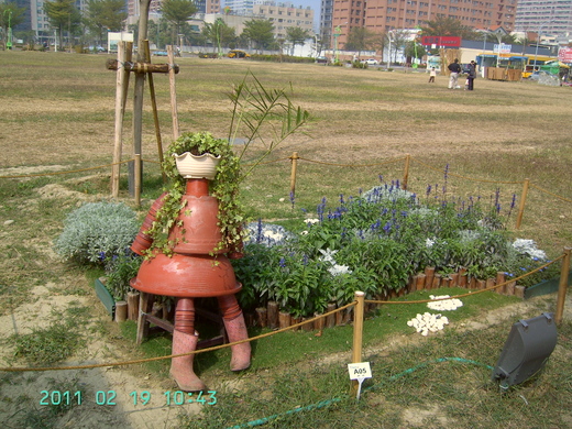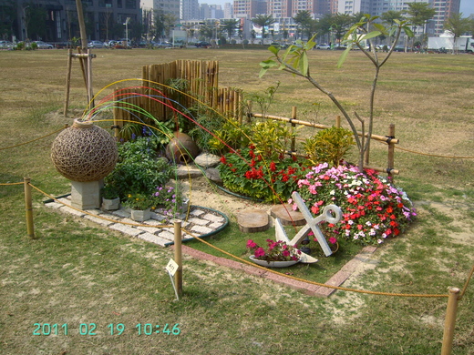今天因妻的推薦,和姐姐們與妻開車到高雄市凹子底公園去賞花,其中有一塊園地,是花圃的小型設計,可以說是各有創意,顯示出這個時代的年輕人是非常敢用一些非傳統性的素材來表現他們對環境設計的美感,謹貼圖於後,讓大家一起共賞。
