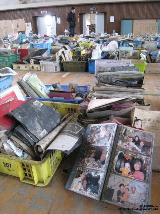 人們需要回憶,存活下來的人在這裡拼命地尋找往生的親朋好友的身影。幸福洋溢的照片上沾染了泥土,讓人感到悲傷。