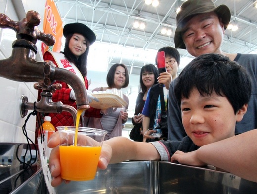 POM橘子汁水龍頭:今年每月第3個星期日的上午10點~下午2 點,在松山機場的出發大廳可以體驗。http://www.kankou-matsue.jp/ shinjiko_yuuhi/