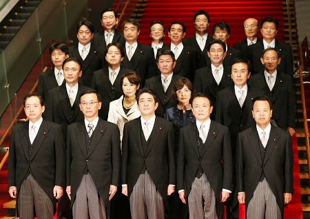 仔細觀察剛剛成立的安倍內閣,尤其是內閣成員們的髮型,你注意到了嗎? 除了2 名女性閣員外,17 人中有15 人的髮型都是「三七分」。因此,安倍新內閣也被戲稱為「三七內閣」。
