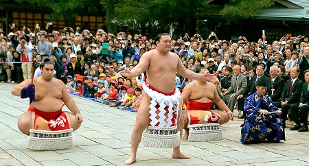 自古以來,相撲就與神靈有著密切的關係。所謂的神靈,即是那些被日本人相信存在於自然萬物中的「八百萬諸神」。而相撲場上力士相互競技的土俵,則被認為是「神靈降臨的地方」,妖魔鬼怪不得擅自侵入。