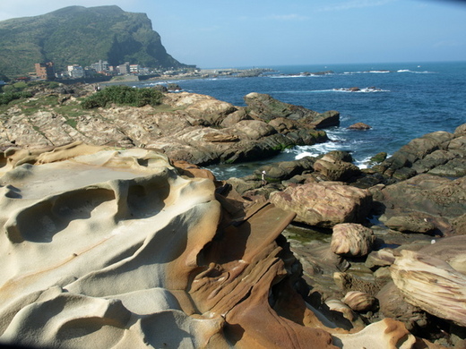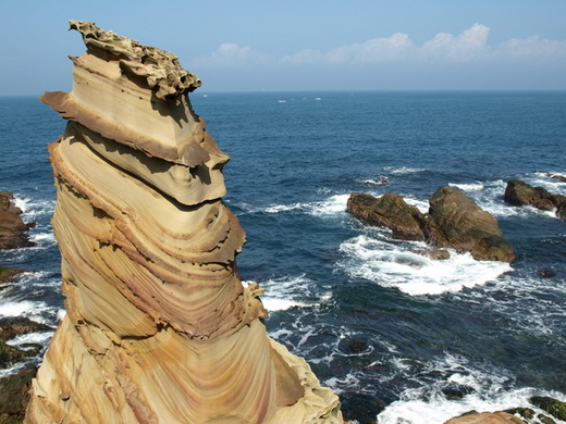 年輕時曾搭乘摩托車遊北海岸,一趟下來依稀記得海岸線與海水很美,還有被晒昏頭中暑啦。前陣子跟著友人去了一趟北海岸,這次好好的欣賞一下北海岸風光,發現龍洞灣及南厓風景還真不錯咧 ! 看看這一塊「冰淇淋岩」,像不像一個癡癡等君歸的 伊人?