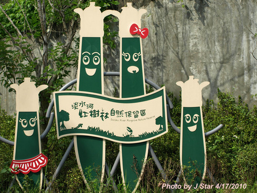 上週六(4/17) 到緣道觀音廟賞初開的桐花,真是美麗。回程在紅樹林捷運站順道去觀賞紅樹林自然生態區,有不少人在腳踏車道上騎乘腳踏車。順著木橋步道走,水筆仔一大片,株上掛滿了一枝一枝的水筆仔,下望樹下溼地,仔細觀察,紅紅的大腳蟹 ( 只有一枝腳很大 ) 、彈塗魚、螃蟹,就在濕地上活動尋找食物。 在這裡也欣賞到了紅嘴黑鵯(紅嘴烏秋),黑丫丫的一隻停在高枝上,不過老神在在的在樹上東張西望。
