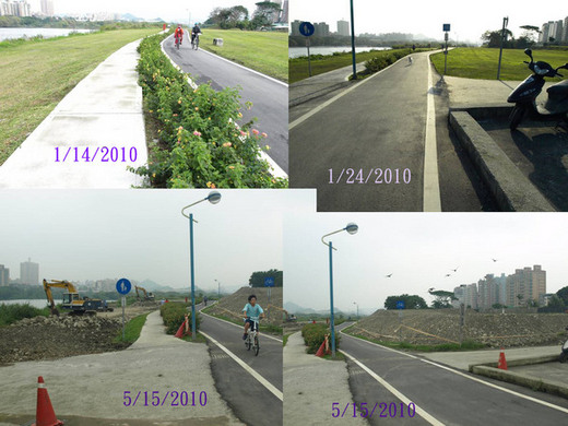 走進河道旁,看到了施工中的河濱,照片上半段是今年一月去時所拍,下半段是五月再去所看到,有些綠草地已鋪上細石子,看來冰冷的水泥地可能將取而代之。只希望這一地方將會是讓市民活動的公共設施,而不是增加市政財源的停車場。.......