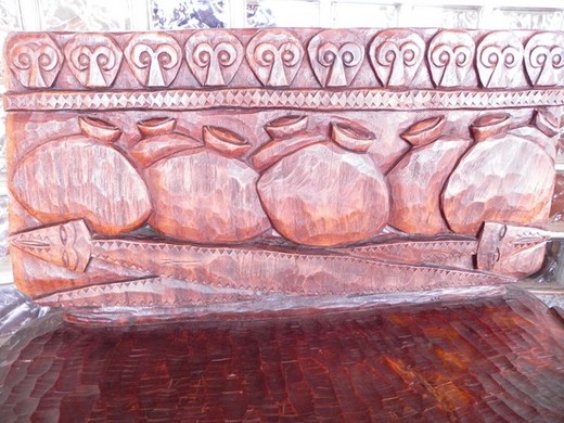原住民的木雕藝術品,就放在騎樓下,走累了嗎?可以坐下來休息休息! 上面不會寫著「請勿觸摸」! 看! 雕刻品中一群婦女正在跳著「供求舞」,祈求下雨?免災害?還是祈求外出打獵的男人滿載豐收?