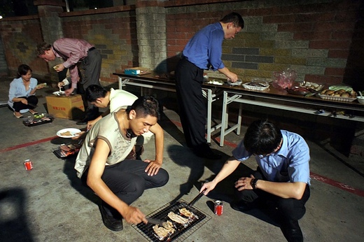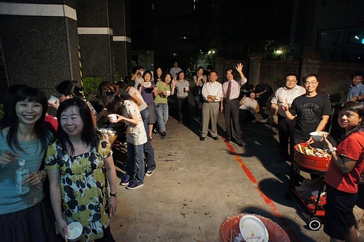 增進同事間感情,今年中秋還是規劃烤肉,放假的前一天舉辦! 得感謝安妮姊姊採買了豐盛的烤肉食材,怕大家下班肚子餓,東西烤不及供大家吃,薇格姊姊也幫忙事先準備了一些 O E C 的熟食 - 北京烤鴨、芋頭米粉湯、生菜沙拉...等。到 Cosco 買的食材很方便,牛肉從價錢看起來就很高級,好吃是必然,所以一拿出來,馬上多人下訂,「這一塊是我的!」「插竹籤這一塊是我的!」......,下手要快,否則免談! 我當然也不落人後,「那一塊我的!」呵呵呵!......