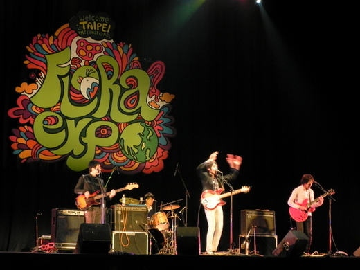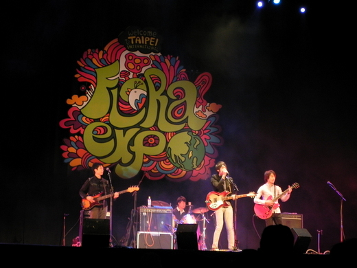 晚上的大佳公園可能是4個花博園區中人最少的一個吧! 也可能因為地較廣闊,天氣有點冷,感覺有點冷清。剛好碰到「拾参樂團」的「搖滾音浪 - 角頭音樂(TCM - Rock Wave)」在行動巨蛋表演。四個年輕樂手在台上彈奏演唱,台下觀眾也很配合邊打拍子邊欣賞演出。