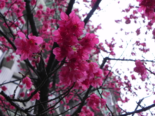 美麗無所不在! 在瑞光路口等公車發現小巷子裡有幾株櫻花正在盛開,應該是台灣山櫻花,紅得發紫的顏色! 奇怪以前不曾注意到這小巷子裡有櫻花樹。想必這裏也是一群喜歡櫻花的居民,才會一樣在住家門口栽種櫻花樹,分享櫻花報春的喜悅!