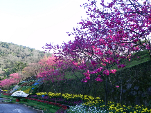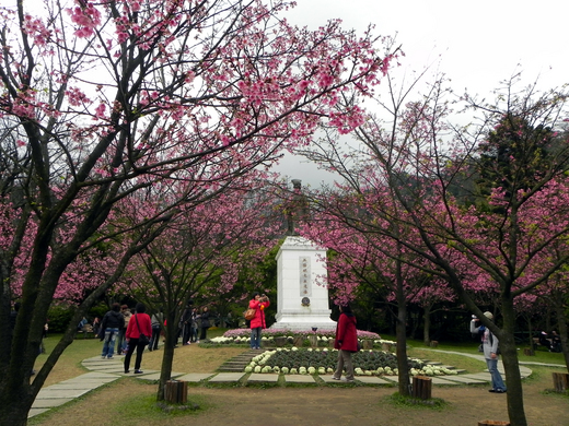 [3/09 補記] 3/09忍不住又去了一趟陽明山,可惜天氣不夠晴朗,但是吉野櫻已盛開了! 紅色、白色、粉紅相呼應,讓陽明山滿山春色更加迷人! 遊客爭相與盛開的櫻花合照,要留下這美麗的一刻做見證!