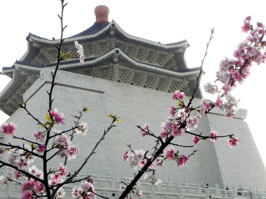 中正紀念堂裡的大寒櫻植株較小 沒有大漁櫻長的那麼茂盛可惜未看到大漁櫻盛開的盛況! 有些綠葉已長出,明年得早一點去!...不過,大漁櫻、大寒櫻、昭和櫻...同樣粉色系實在很難分辨!