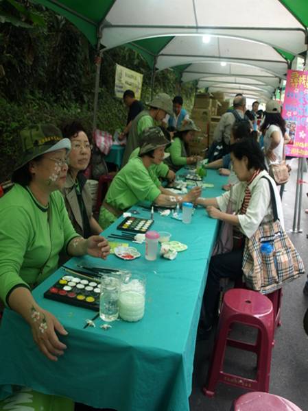 想起去年2010年土城桐花節 4/17~5/02 「藝響桐花 童話土城」系列活動,把土城一年一度桐花節盛事推到高峰。 5/01~5/02 在土城 南天母廣場熱鬧演出,園遊會式讓萬民賞桐、親子同樂其樂融融。 現場可看出有規劃的安排各攤位進駐, 5/01 還有志工帶頭引導民眾一起跳健康舞蹈,不過民眾似乎都害羞,圍觀者眾,卻少加入者。捏麵人這一攤,十二生肖造型可愛,我也忍不住買了 2 個小型的生肖動物,一個 150 元。彩繪區讓人很有嘉年華的感覺,在肥肥的手上彩繪一朵桐花,很有嘉年華的 FU :)) ;看看彩繪志工專注認真的表情,會不會也想畫一朵ㄚ ?!