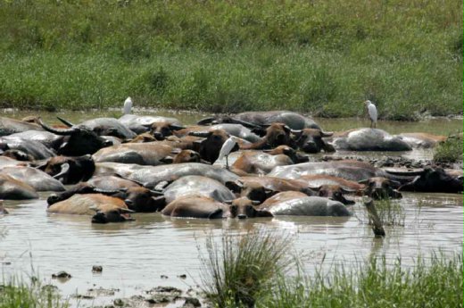 過去,我們曾看過的經驗是,休息時的水牛,在田邊不是耕地的水塘或溝渠,營出納涼的水堀,大家都不會有意見,但如果水牛自己跑進田中,想營一處納涼的水堀,我們看到的是,水牛不被以藤條教訓,那才是怪事。