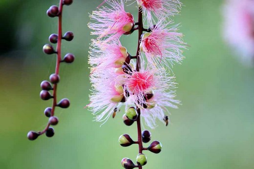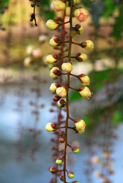 穗花棋盤腳為玉蕊科常綠小喬木,總狀花序自枝頂下垂,花朵由上而下綻放。其花期6~8月,是一種水岸性質的美花植物,可種在水池邊供造景美化之用。