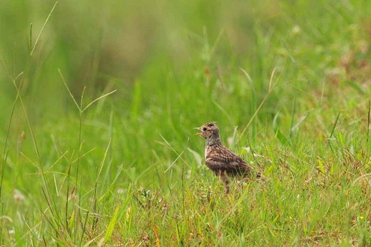 地面靜下來的雲雀活動上還蠻隱密的,遊走在能掩飾牠們覓食,長在二十公分左右的草原上。從鳴叫的高處落地後,會故意在草間走一段路程,以掩人耳目。