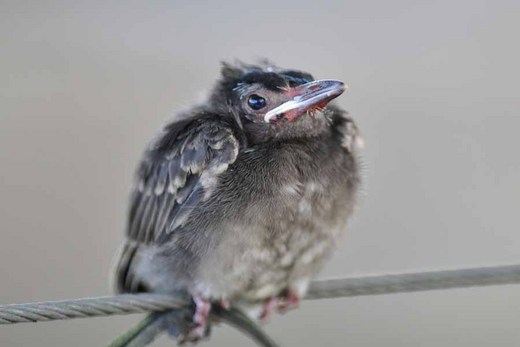 親鳥在雛鳥成長的過程中,一方面擔任餵食和保護的角色,但觀察推論,鼓舞和刺激幼雛離巢的行為扮演,可能也是紅嘴黑鵯這種鳥屬,生性中重要的一環。