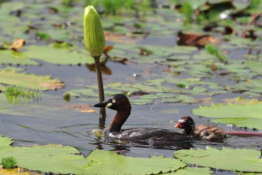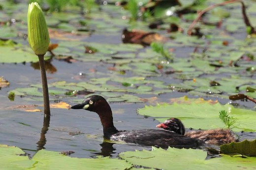 覓食的空檔,小小鸊鷉終於逮到機會,一一爬到親鳥的身上,看似將沉的身形,依然足以承受眾多小小鸊鷉的體重。小小鸊鷉是擔心娘跑了?真是群超黏娘的小傢伙。