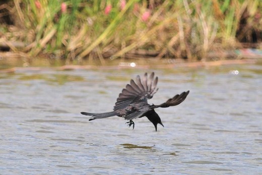 「烏鬚」的飛行技巧相當出色,除了展現在覓食時俐落的動作外,最令人印象深刻的是,騎在台灣大冠鷲頭上,領域內强悍地驅逐猛禽鳥類。圖內一幅記載大卷尾飛行中喝水的圖像,同樣生活中,看到牠們自豪和非凡的飛行能耐。