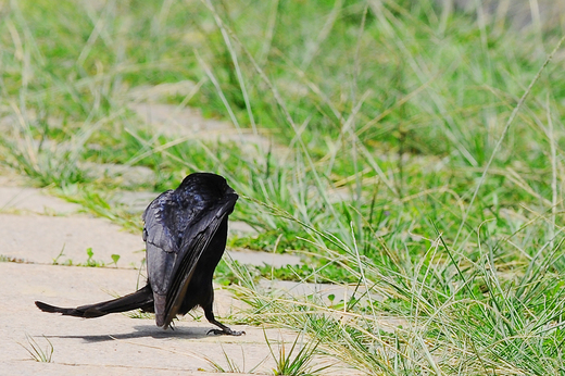 好笑的是,牠們狠狠打架之間,其中一隻,還起身,氣呼呼地驅趕一隻倒楣的大卷尾,牠正以嘴巴拔草,準備回去築巢。而驅趕的方式像及了大卷尾騎在大冠鷲頭上一樣,好個凶狠樣貌。