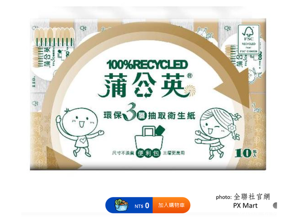 蒲公英環保便利包衛生紙銷售不興,有一些是便利包規格的因果相依原罪:線上線下賣場銷售的便利包放置盒,選擇的確不多。另如同前述,這款再生紙漿衛生紙的高昂售價是硬傷。近期全聯社在促銷:兩串促銷價179元(等同一串89.5元,比正隆自家的春風120抽10包一串的原生紙便利包牌價108元再低一些),歡迎大家去找一找逛一逛。