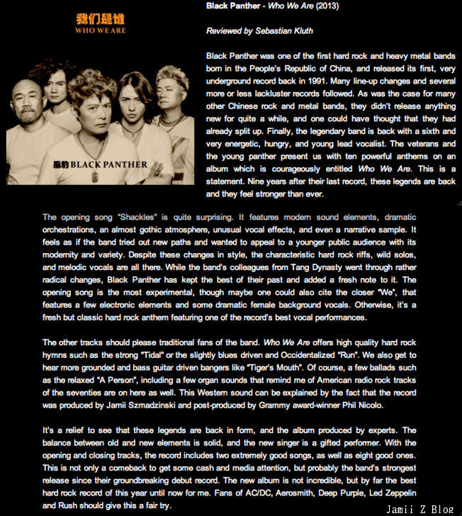 2013年歐美樂評雜誌BlackWIndMetal International評論黑豹樂團2013年新專輯((我們是誰))