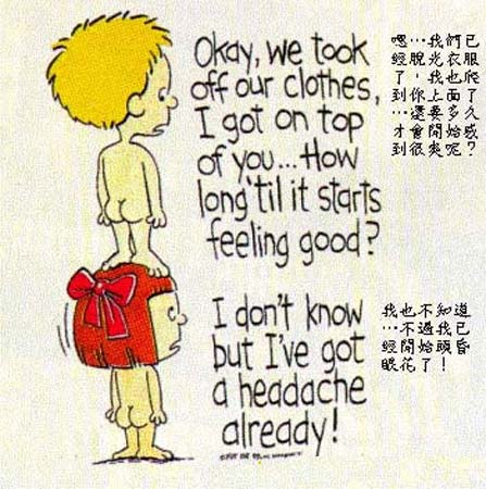 那天大兒子放學回家,就報告早上老師和他們談論小孩不笨的劇情,然后也教他們有關于男女的生理構造,及青春期開始會有的身體變化。當然,老師是用生物的觀點來解釋發育的狀況。嗯!他還可以接受,精子,卵子,28天,變聲…..等等。