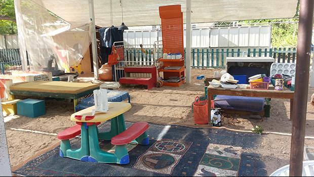 我目瞪口呆的望著一個院子的舊廢物。心中問不出來的問題是:「小孩不是該玩『玩具』?為什麼你們以色列人反而給日常生活的真實物品做玩具?」