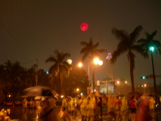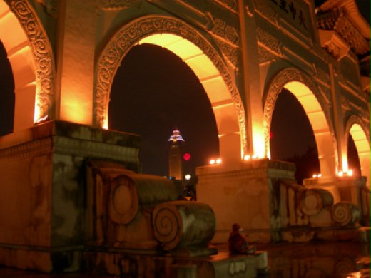 九月九日,我在總統府街道前看到的民眾,都是一群面善和藹的人群,靜坐廣場中的人們,不時呼應著台上的倒扁口號,可是還有一群坐在路旁石階及路中便椅上的人們,他們總是低著頭,有時會抬頭看看天空那四顆『禮』『義』『廉』『恥』的紅色汽球,天色已暗大雨滂沱,這一群人在黑夜風雨中,抱持著幾分阿扁下台的希望,為台灣民主寫下歷史性的記錄。