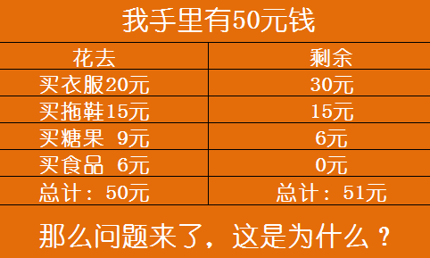 也就意味著,每次花掉的錢的總計,與每次花掉后剩餘錢的總計,本來就沒有對等的關係。