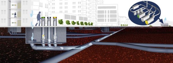 在這種固定式真空系統中,使用者丟棄垃圾的流程看似普通,其實是暫時存放,再定期清空地下管道網絡。 (圖/ Sweden.se)