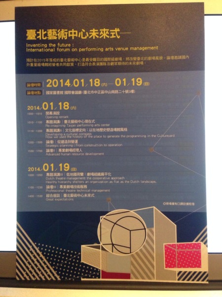 應該說,在場館正式營運之前,真正的考驗並沒有真正來到。當然,台北藝術中心未來式-國際展演場館營運管理論壇的舉辦或許可以拉近現實與理想的距離,也或許可以發現一些隱藏在盲點之後的事實或是黑洞,值得鼓勵,也值得期待。