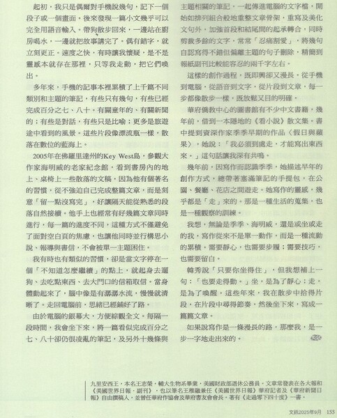這樣的創作過程,既即興卻又漫長。從手機到電腦,從語音到文字,從片段到文章,但每一步都像散步一樣,既放鬆又目的明確。