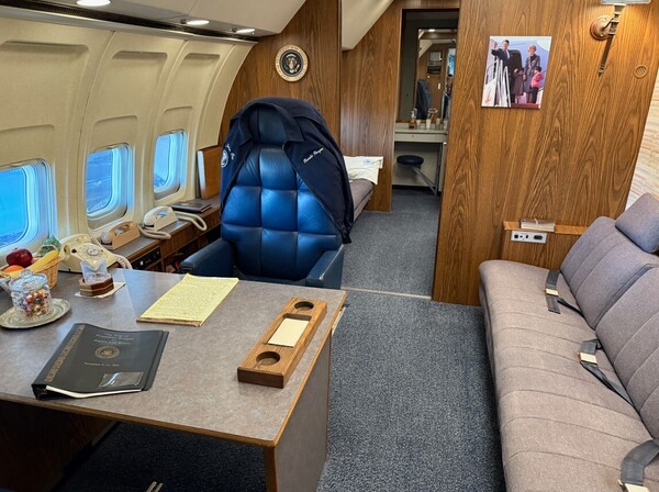 走進冷氣十足的展覽館,除了冷戰、柏林圍牆與蘇聯領袖的歷史畫面外,在複製的白宮橢圓形辦公室裡,我注意到辦公桌上放著一個裝滿五顔六色的軟糖豆(jelly beans)小玻璃罐。導覽牌上寫著:「這是雷根總統最愛的零嘴。」後來在展示大廳的波音707空軍一號專機和「海軍陸戰隊一號」直升機內的桌子上,也都看到相同的玻璃罐。