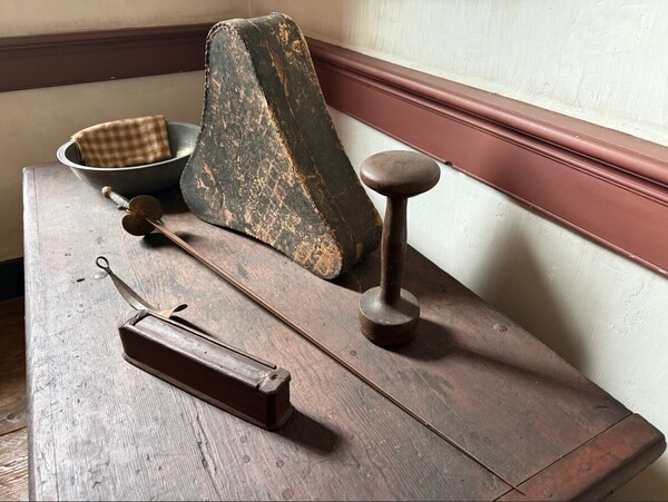 裡頭的陳設保持十八世紀原樣,特別是餐桌上的銀燭台與陶瓷餐具,呈現出上層階級的生活樣貌。走進主臥室,桌上放著三角型軍帽盒與指揮刀,令人想起戰爭年代的緊張氣氛。不過,導覽員卻特別指著一件外形像豎立的啞鈴,說:「那是專門用來掛假髮的假髮架。」