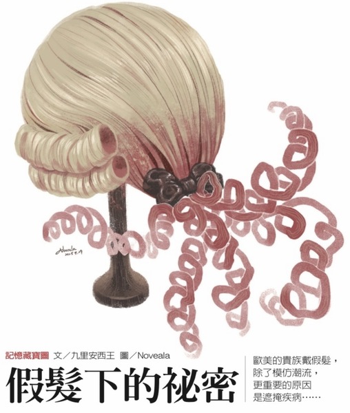 他解釋,十七、十八世紀歐美的貴族戴假髮,除了模仿潮流,更重要的原因是遮掩疾病。當時梅毒流行,患者常因頭皮潰爛形成斑禿,樣子難看且不名譽。於是,許多貴族男士也戴假髮。