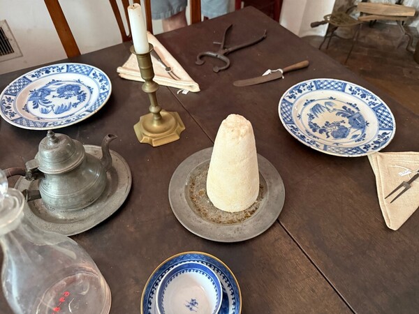 2025年春天,我們到賓州古城約克旅遊,市中心有一個殖民地歷史園區,內有一棟十八世紀的老屋,獨立戰爭初期戰績輝煌的蓋茲將軍曾在這裡短暫居住,所以稱為蓋茲故居。他的餐桌上就擺著一個糖錐和糖剪刀,導覽員說:「當時貴族宴客,一定少不了糖錐。」宛如那個時代「以糖示貴」的名片。