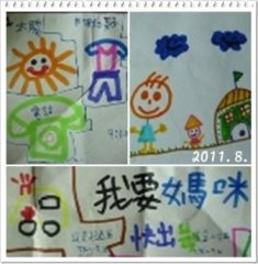 今年的暑假,高齡的我安胎住院、直到生產、坐月子,足足的三個月家中幾乎都沒有我的影子。這是孩子畫給我的卡片,那時她們每晚都央求著媽咪回家睡覺…;寶貝,我也好想回家!多少個夜裡,媽咪獨自呆看著天花板,想著妳們失落孤寂的眼神而淚流…,但為了葳葳,媽咪一定要忍耐躺著。