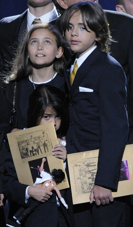 圖片說明:Michael Jackson 的三個孩子出席 MJ 的追思會。