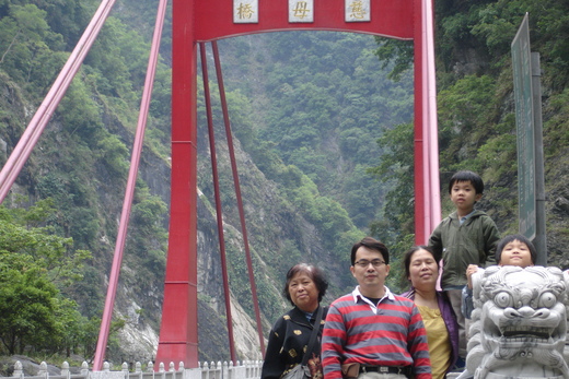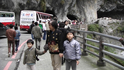 在花蓮火車站接到他們以後,我們繼續往太魯閣方向前進。太魯閣確實是鬼斧神工。但是沿路上也看到很多大陸老鄉的團體。不管是在燕子口、九曲洞、還是慈母橋,都可以聽到他們的鄉音。還記得小時候,他們還是萬惡的共匪、接著我們變成是呆胞去大陸旅遊、再來是小三通,可是都是只有我們能過去,他們沒有辦法過來。想不到短短一年的時間,到處都是陸客的團體。