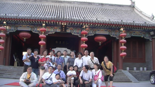 走完了長城,下午去參觀頤和園。頤和園最早是由乾隆皇帝所建,1860年時被英法聯軍大火燒毀,西元1884年,慈禧太后挪用北洋海軍的經費重修頤和園,這也造成了之後中國海軍一蹶不振,繼而引起了甲午戰爭之敗導致清庭割讓台灣與日本。逛完了頤和園,晚餐去郡王府餐廳用餐。據說這是清朝開國八大鐵帽子王之一,順承郡王的府邸。民國後,也曾經被張作霖當作大帥府,張學良跟趙四小姐也曾經在這裡住過一陣子。我們在西廂房用餐,由於當天也是心鵬的生日,我們順便幫他慶生。坐在郡王府裡吃飯,由穿著宮女服裝的 waitress服務,讓我們有思古之幽情。也幫心鵬過了一個很特別的生日。