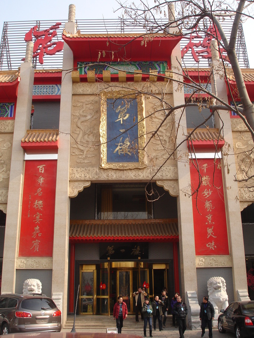 北宋168年就有164個開封府尹。他們的名字通通刻在一塊石碑上,經過多年遊客的摩擦,可以發現包拯的名字明顯凹了一塊。小徐說,壞人摸了石碑上包拯的名字,手就會變黑,哈!另外園內還有一尊蠟像館,是用真人來模擬【鍘美案】這一齣膾炙人口的包公案一景,前面還擺有龍頭鍘、虎頭鍘、以及狗頭鍘。開封人非常崇拜包公,遇到有任何的疑難雜症,都會到包公祠裡拜拜,請求包公保佑。包公祠參觀完就去吃午餐了,中午是吃第一樓的包子宴,人很多,看得出來本地人也都會來這裡吃飯。
