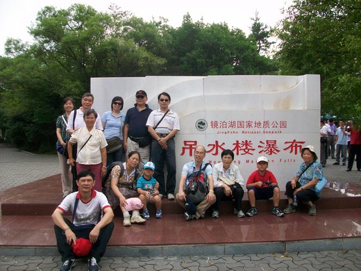 參觀完鏡泊湖以後,坐遊園專車前往吊水樓。吊水樓瀑布位於鏡泊湖北端,高約20
