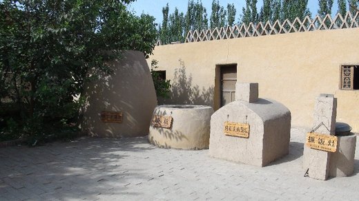 參觀完葡萄溝,我們前往隔壁阿拉木汗的家。品嘗吐魯番的瓜果以及維吾爾族的民居生活。維吾爾族裡的男人地位很高,所有的男士沒有上坑前,女士不可以上坑。男士上坑後,女士要坐在心儀的男士對面。如果男士沒有拿東西起來吃,女士不可以拿東西起來吃。在坑上,男士盤腿坐而女士則斜坐。全部的人都坐好後我們拿起桌上的瓜果來吃,同時欣賞維吾爾姑娘的舞蹈。吃完以後我們跟他們選購一些他們自己做的葡萄乾帶回台灣做紀念品。