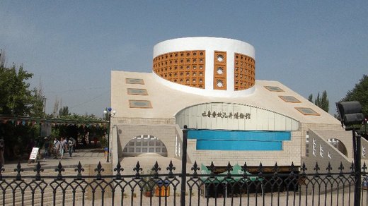 我們一路從地下室參觀,了解古時候的吐魯番人民在地下建造豎井與暗渠的辛苦勞動情形,所有的模型作的栩栩如生,真是令人嘆為觀止。轉到樓上看到吐魯番人民如何在兩個豎井之間取得平衡以免暗渠接不上,讓我對吐魯番人民的智慧自嘆弗如。從博物館走出來會經過一條很長的商店街,賣著一些絲巾、羊毛毯等當地特產,還有一些維吾爾族姑娘穿著傳統服裝,隨機找一些落單的觀光客合照,一次三元人民幣。需要花費一番力氣才可以掙脫。